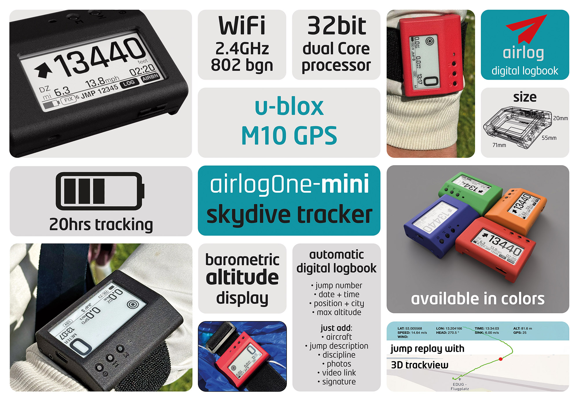 After transferring this information to the cloud dashboard, your jump log is completed – you only need to add data such as drop plane, fellow jumpers and comments. This logbook is available to you worldwide and at any time in the web browser.